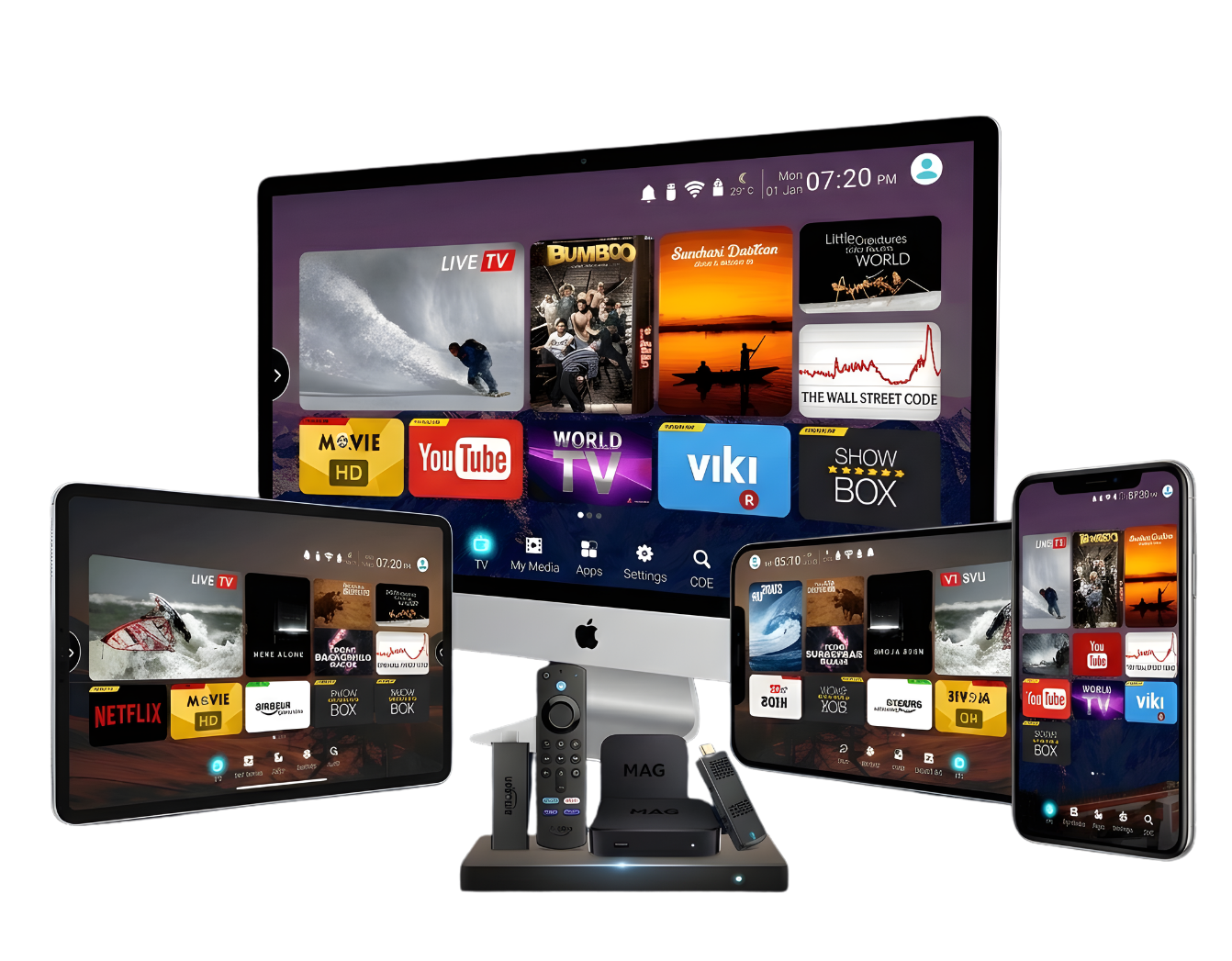 Our IPTV subscription is compatible with all your devices, Smart TVs, Android Box and Phone, Apple Devices, Amazon Fire Stick, KODI, and MAG Box we literally support all kinds of devices.